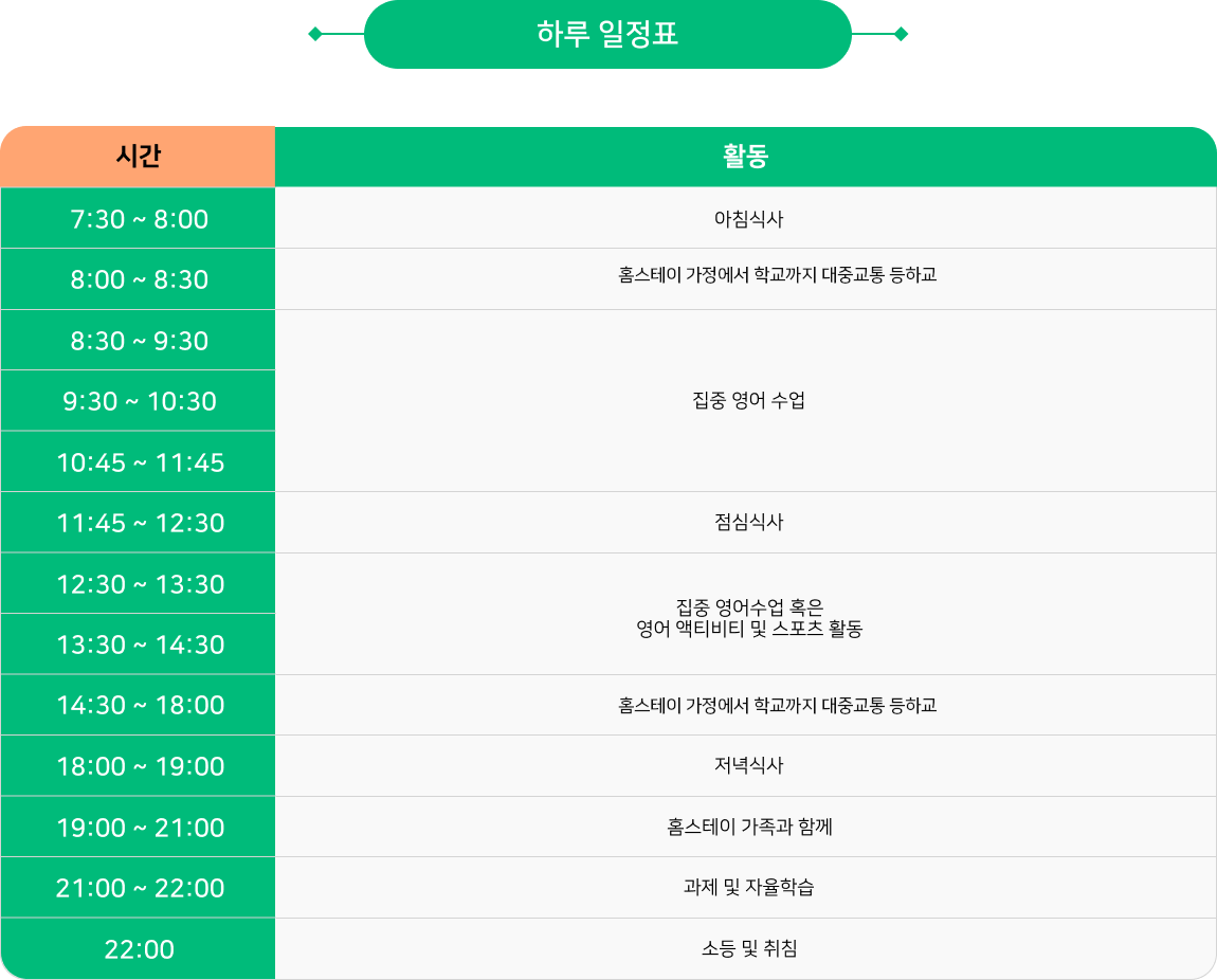 영어 문법만해서는 speaking이나 reading은 늘지 않는 걸 알았고 단어공부가 필요하다고 느꼈다. 홈스테이도 좋고 친구들도 좋았다. 여러 사람을 만날 수 있는 좋은 시간이었다. 언니들과 친구들과 재미있었고 좋은 선생님들이 많아서 더욱 유익하고 재미있었다. 이번 캠프를 계기로 유학이라고 하는 걸 꼭 하고 싶습니다.